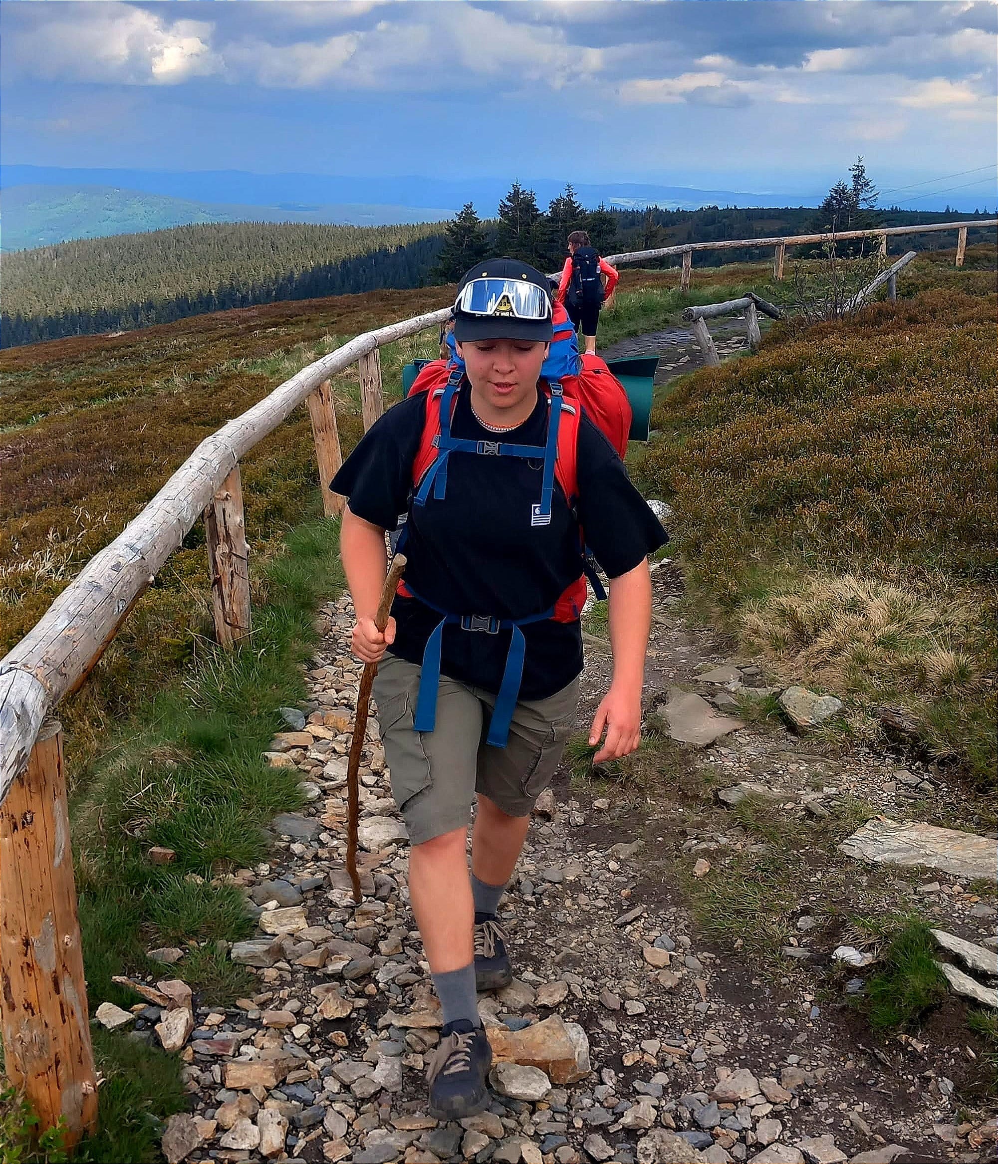 Po cestě jsme se smáli, fotili, povídali. Všichni plní energie. Jen Anička ke konci u Obřích skal trochu trpěla. Tam jsme potkali Romana – běžce ultra závodů, co chtěl spát přímo na skalách.